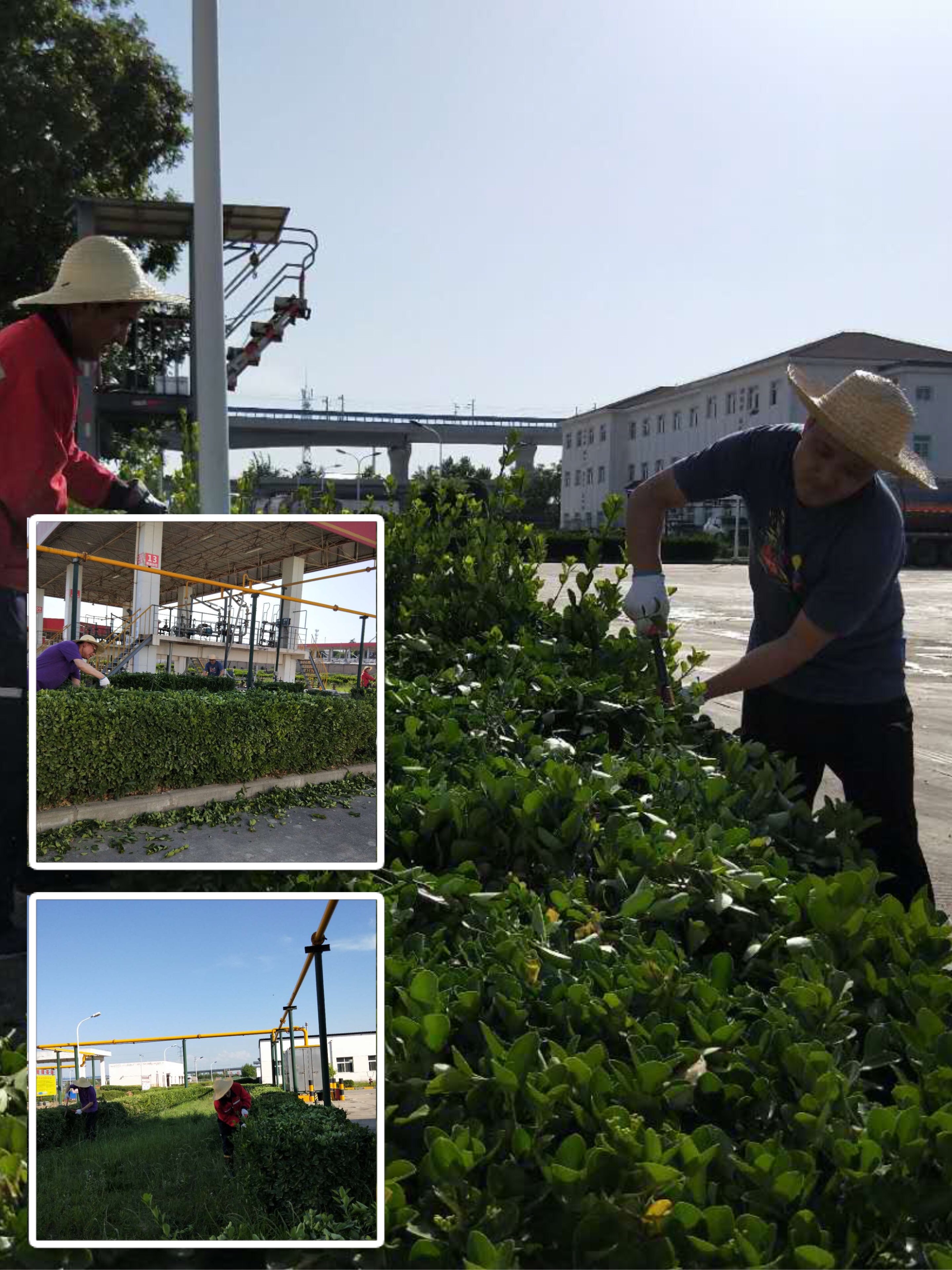 劳动创造财富,劳动美化环境。初夏时节,风和日丽,在余晖的照耀下,油库显得格外耀眼。5月11日下午,在公司领导杨庆昌带领下以“美化油库,共建美好家园”为目标,组织公司机关和油库部分员工进行义务劳动——剪冬青、除杂草,用实际行动推动美化油库、传播团结一致、互帮互助的正能量。